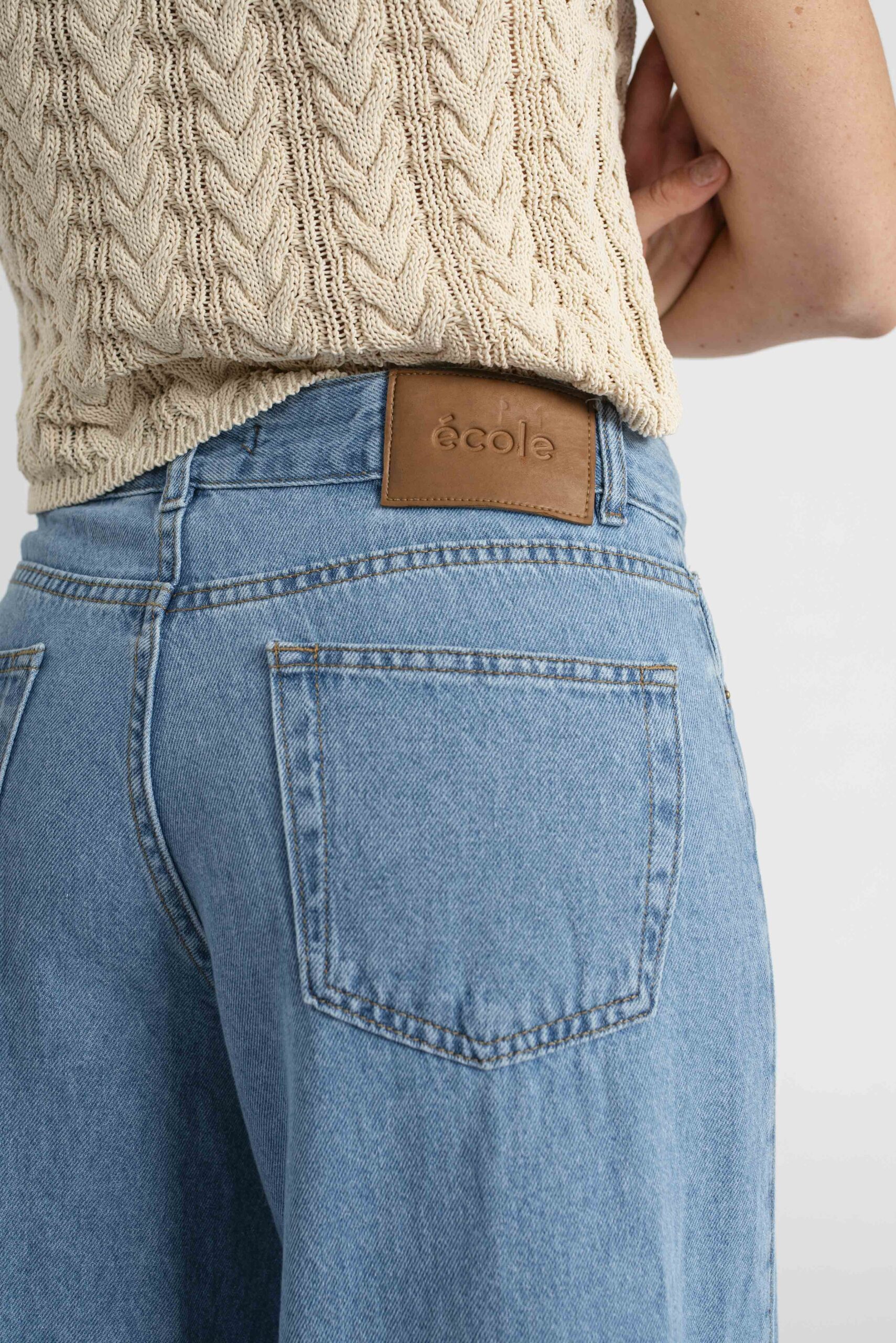 Moldería: normal Tiro: medio Tela: rígida pero liviana Lavado: celeste liso