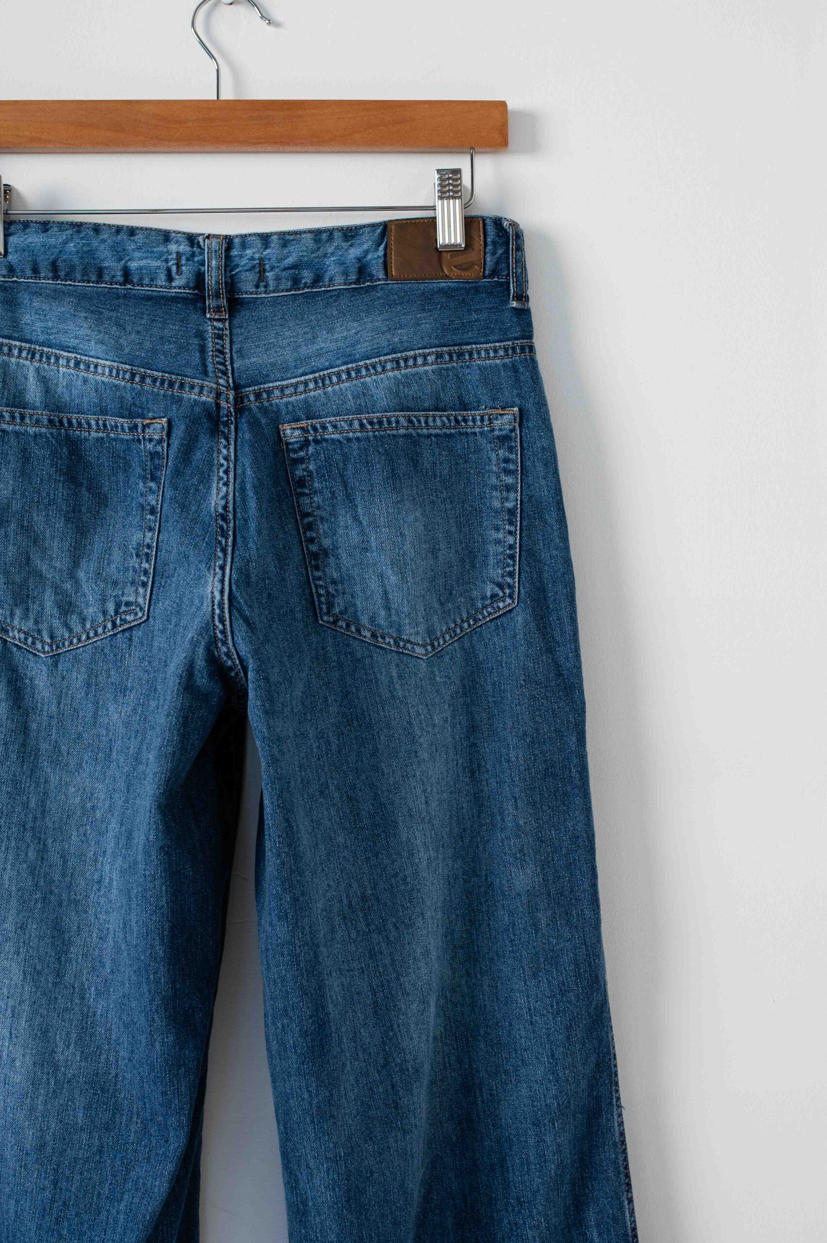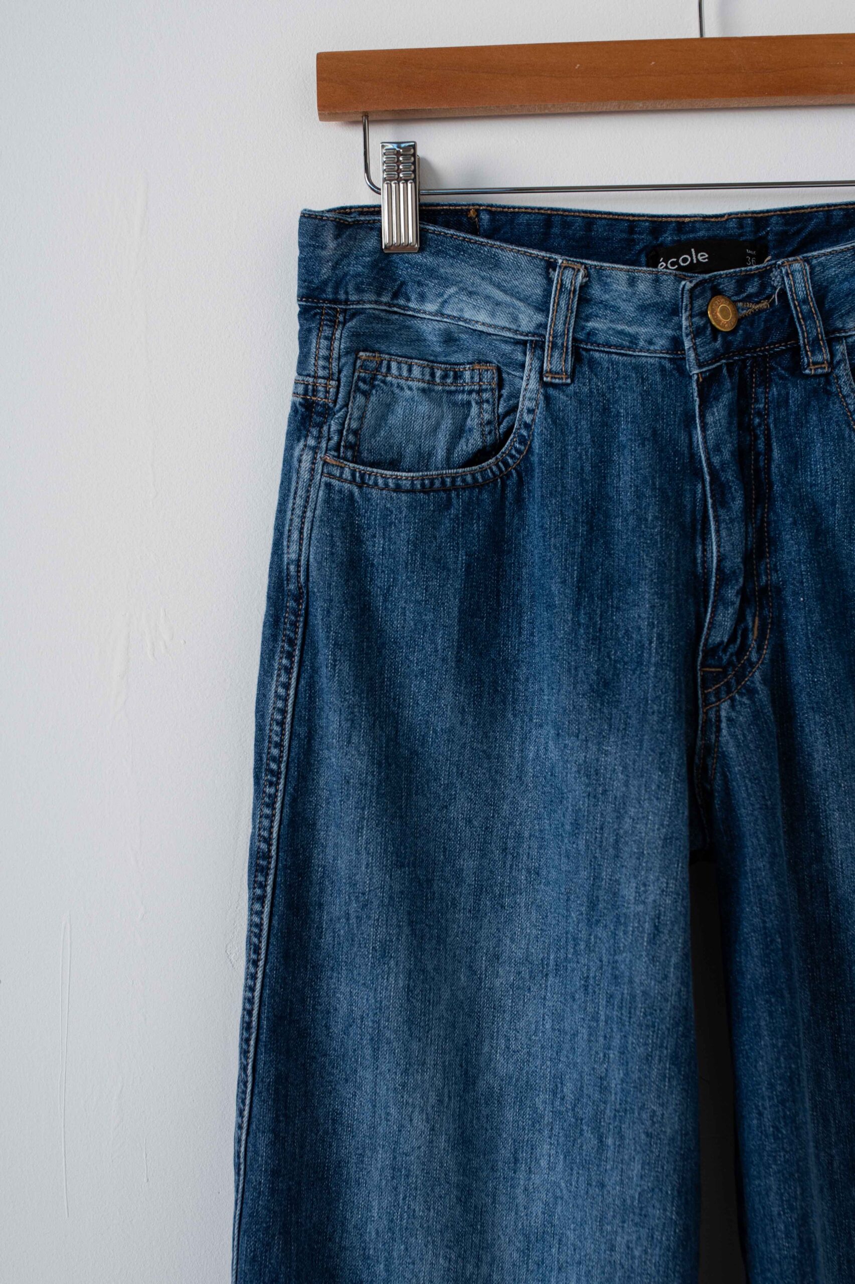 Moldería: normal Tiro: medio Tela: rígida pero liviana Lavado: azul localizado