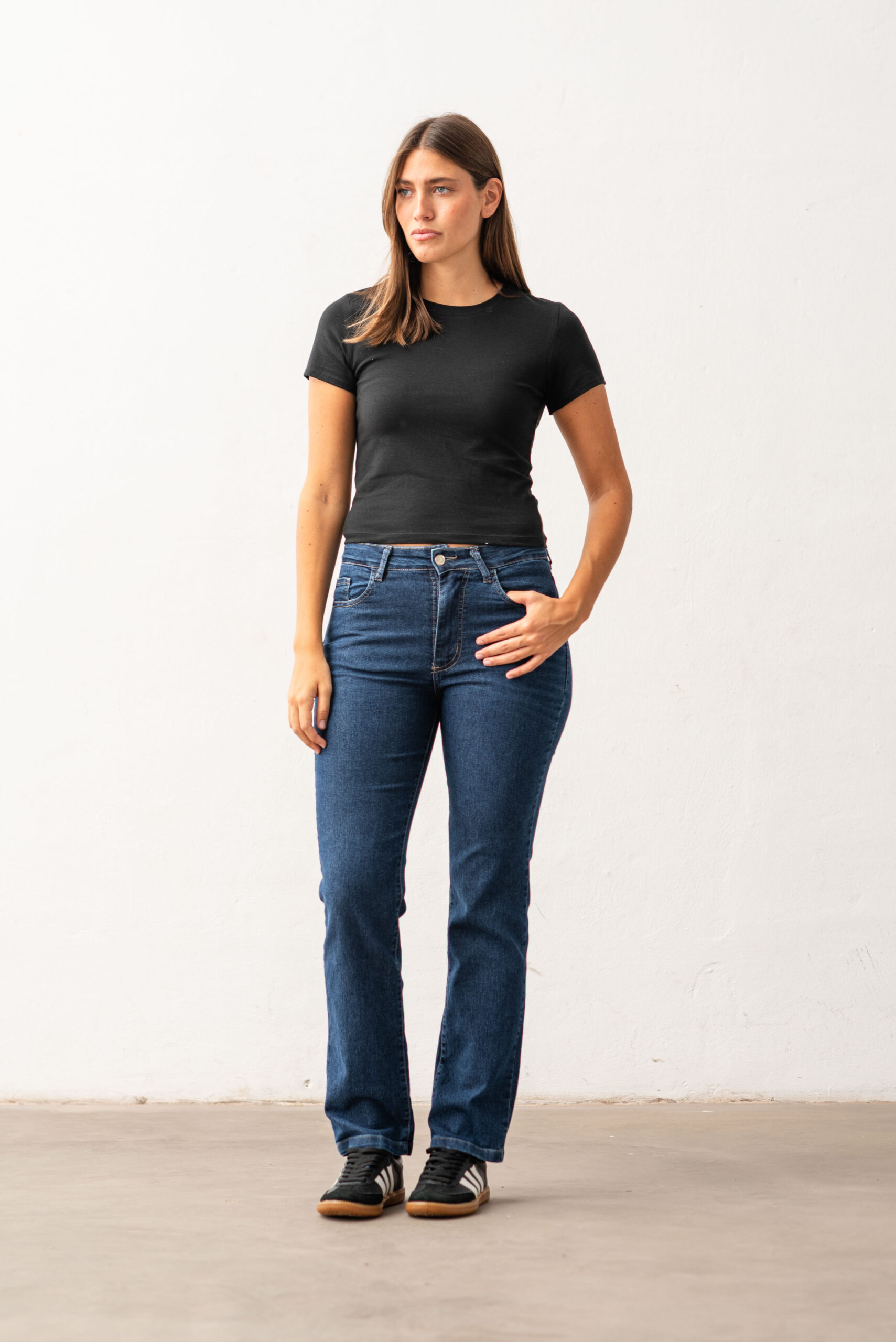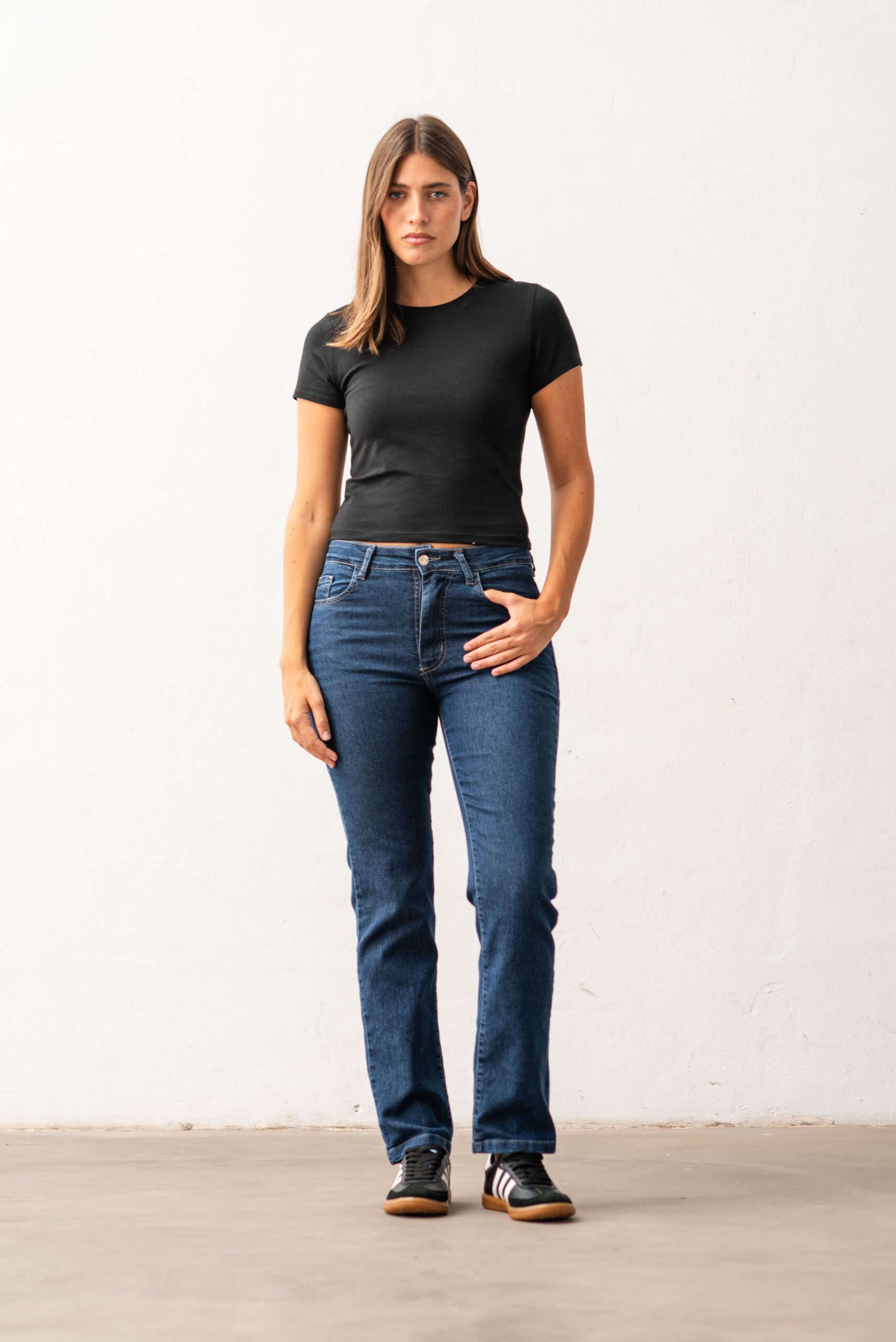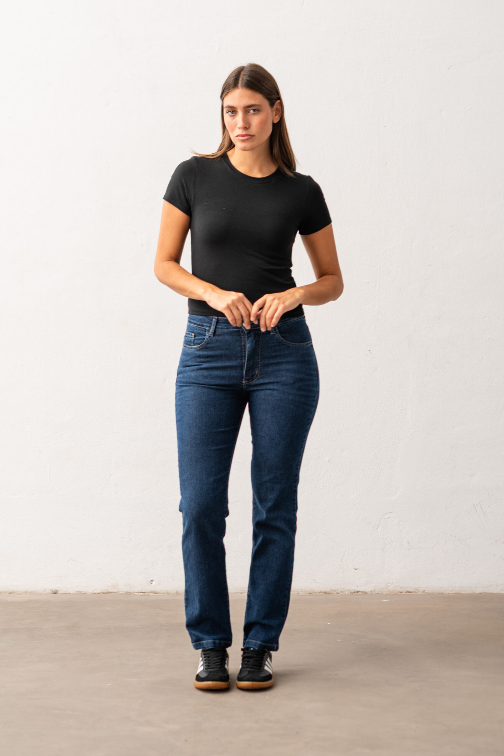 CONFECCIÓN NORMAL TIRO MEDIO ALTO DENIM ELASTIZADO LAVADO AZUL ENZIMATICO CON BIGOTES