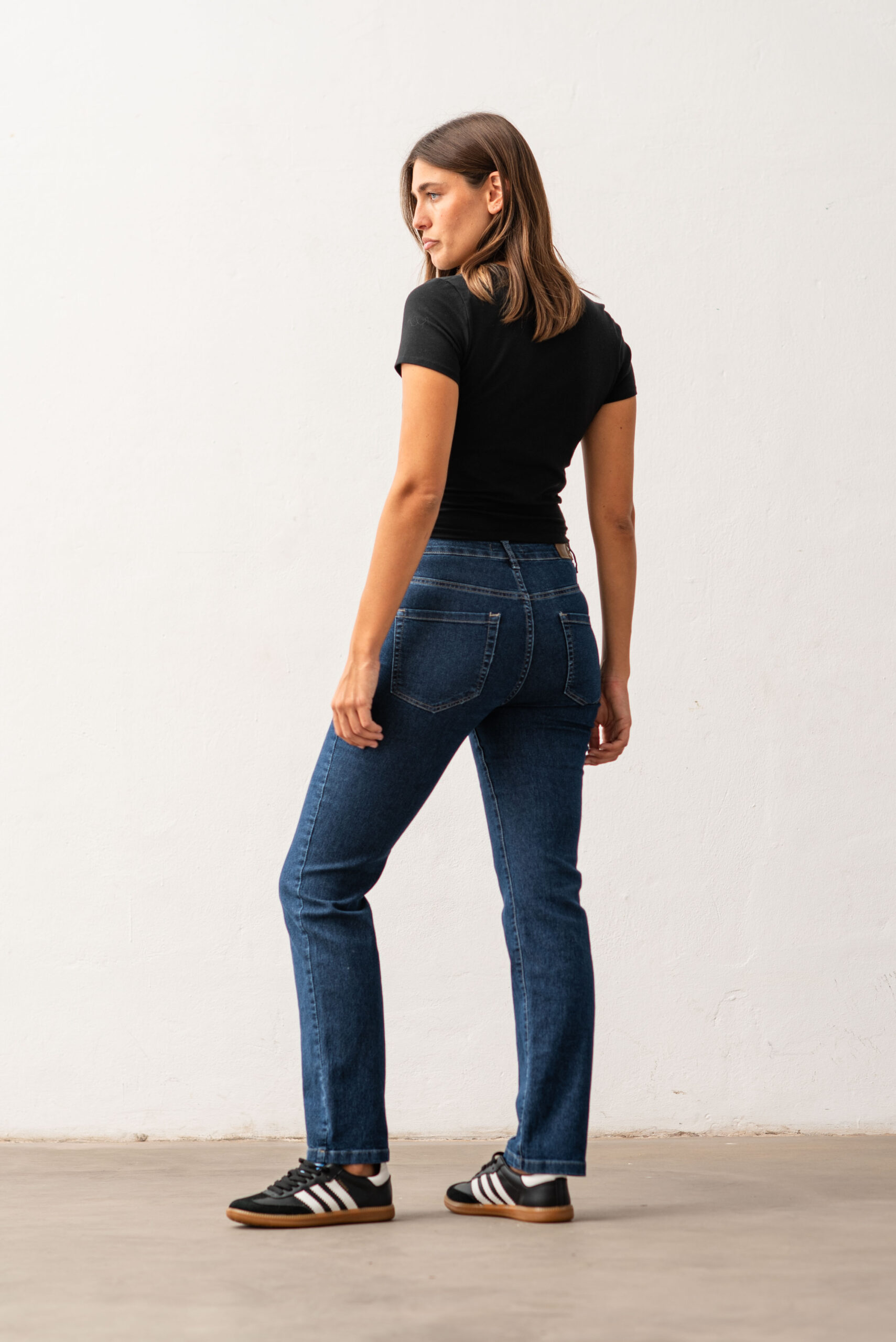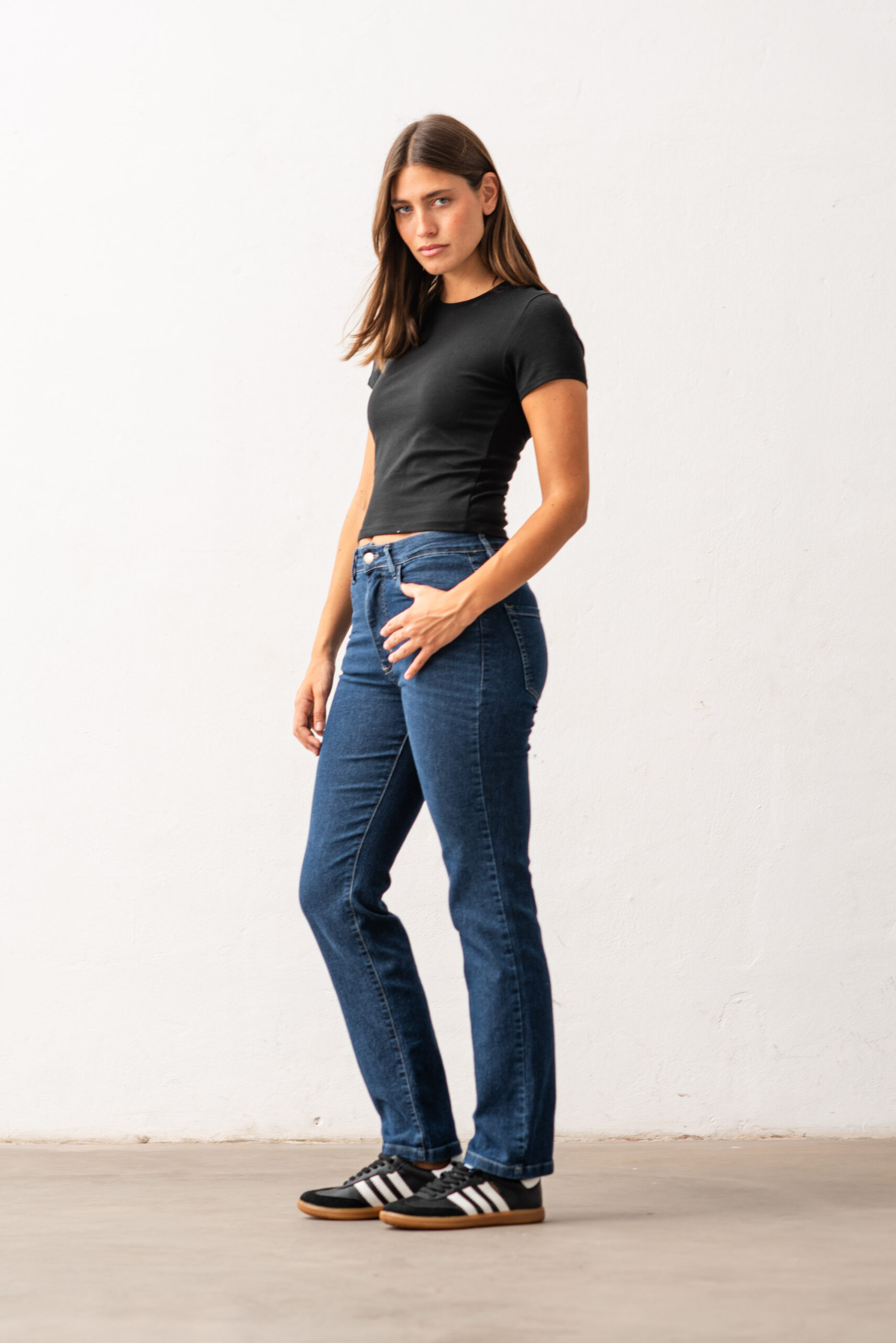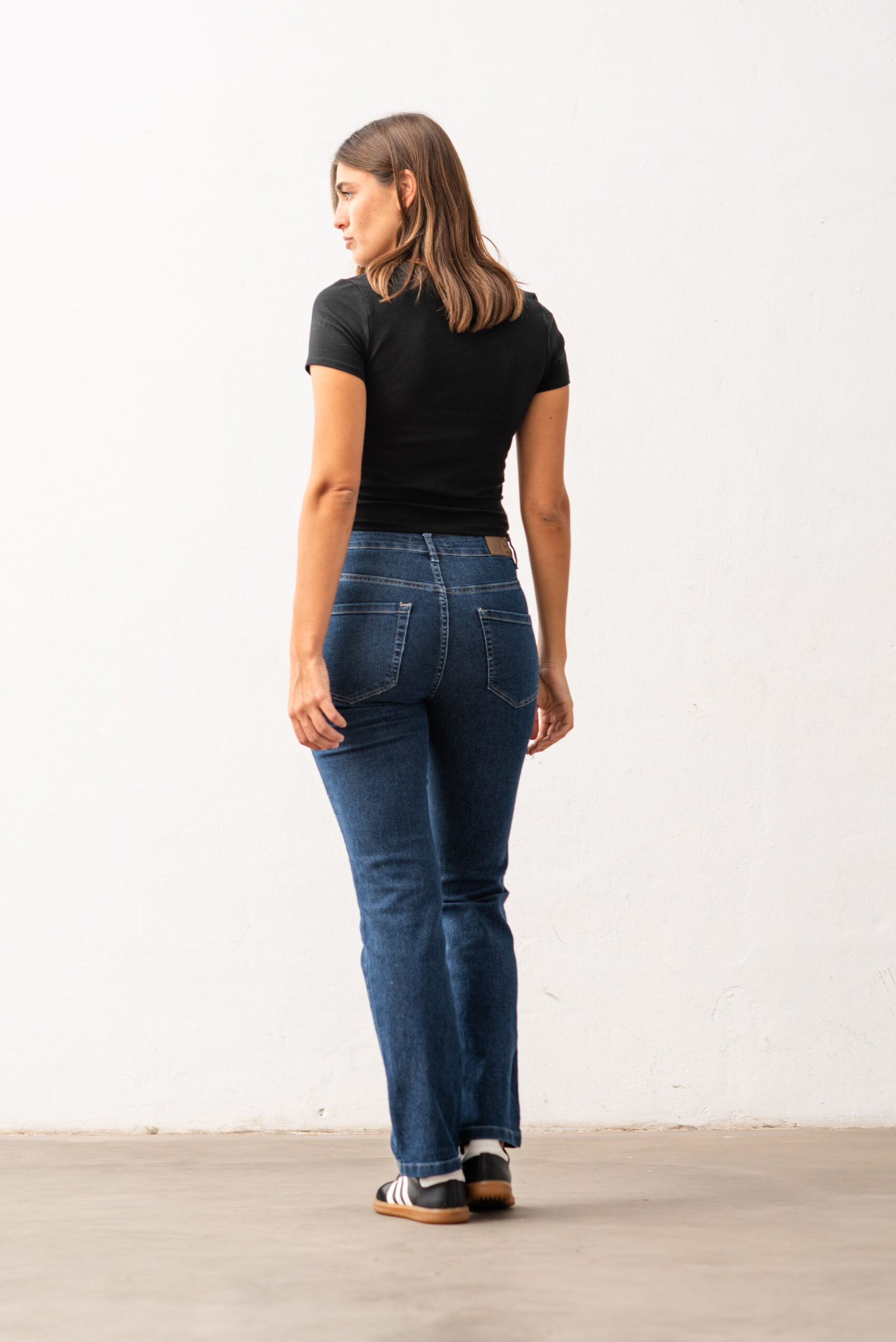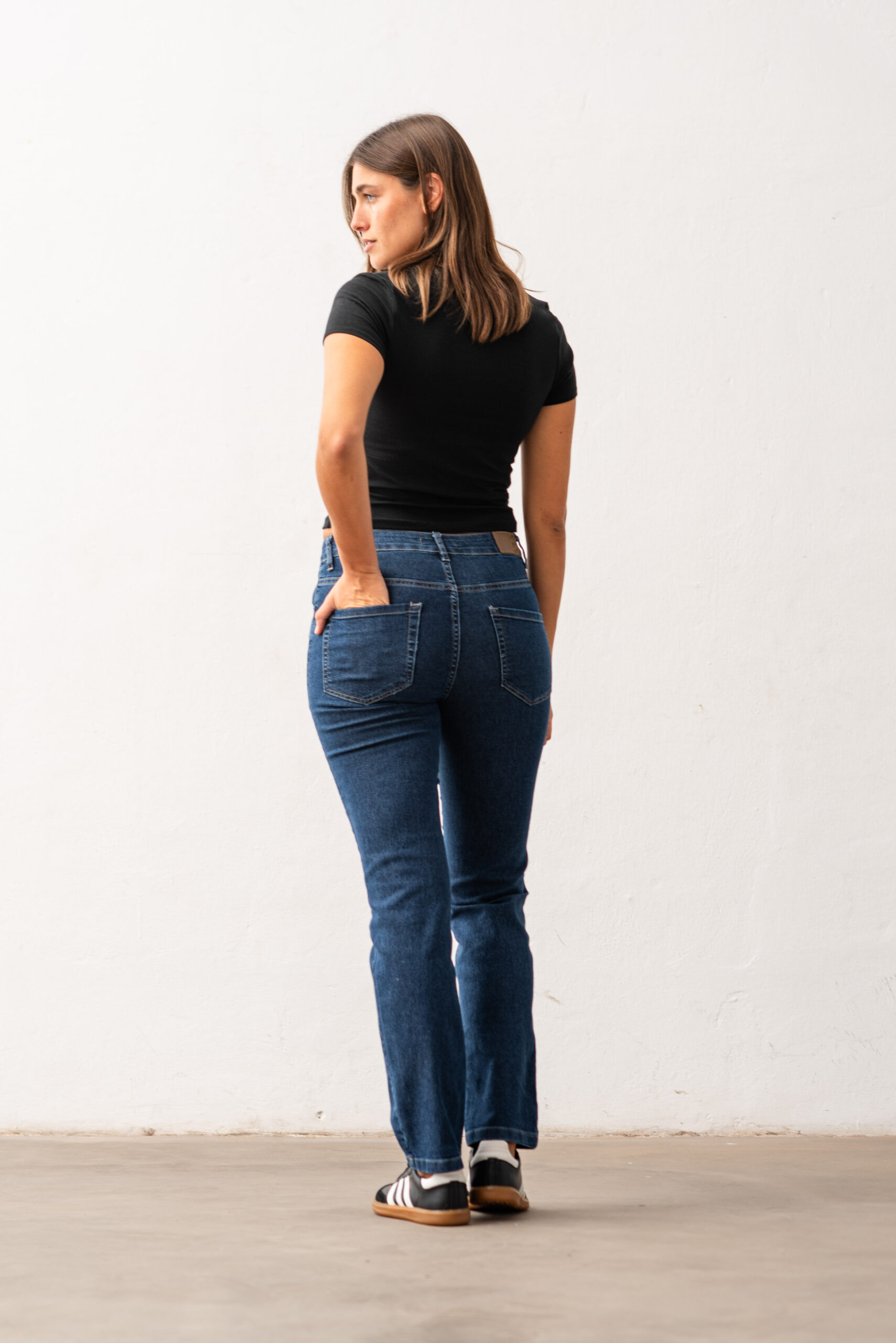 CONFECCIÓN NORMAL TIRO MEDIO ALTO DENIM ELASTIZADO LAVADO AZUL ENZIMATICO CON BIGOTES
