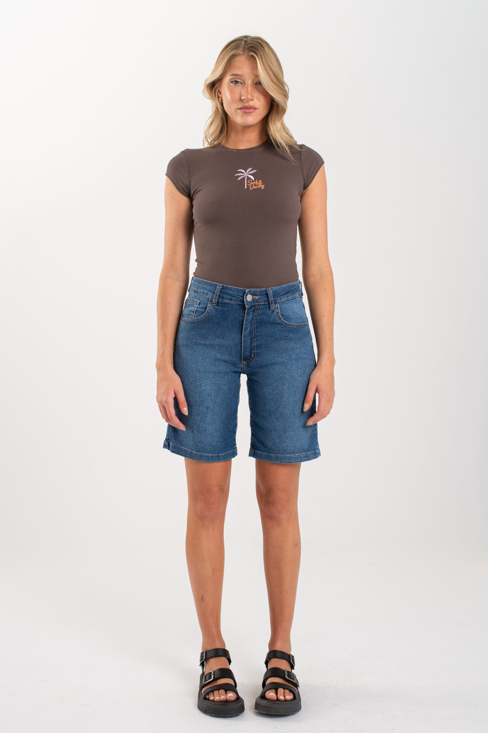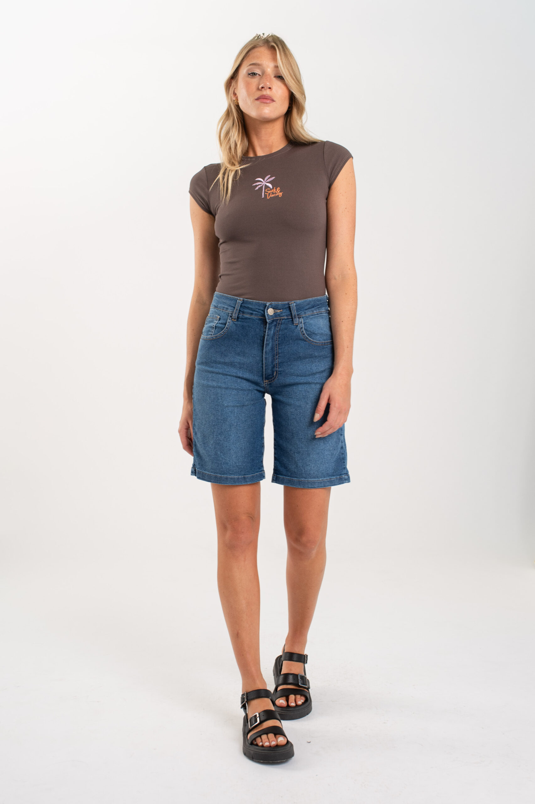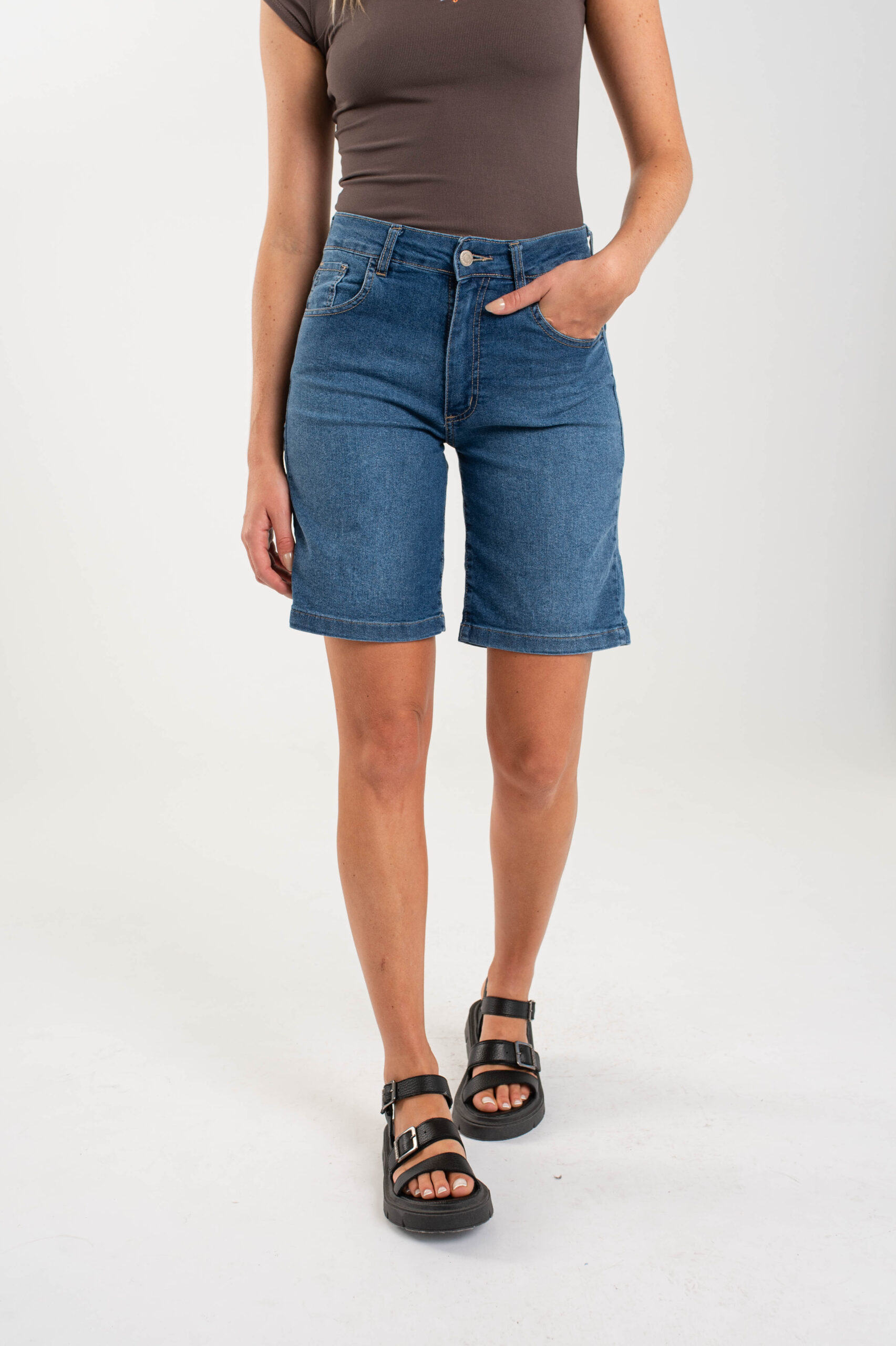 Moldería: normal Tiro: medio/alto Tela: elastizada Color: azul localizado