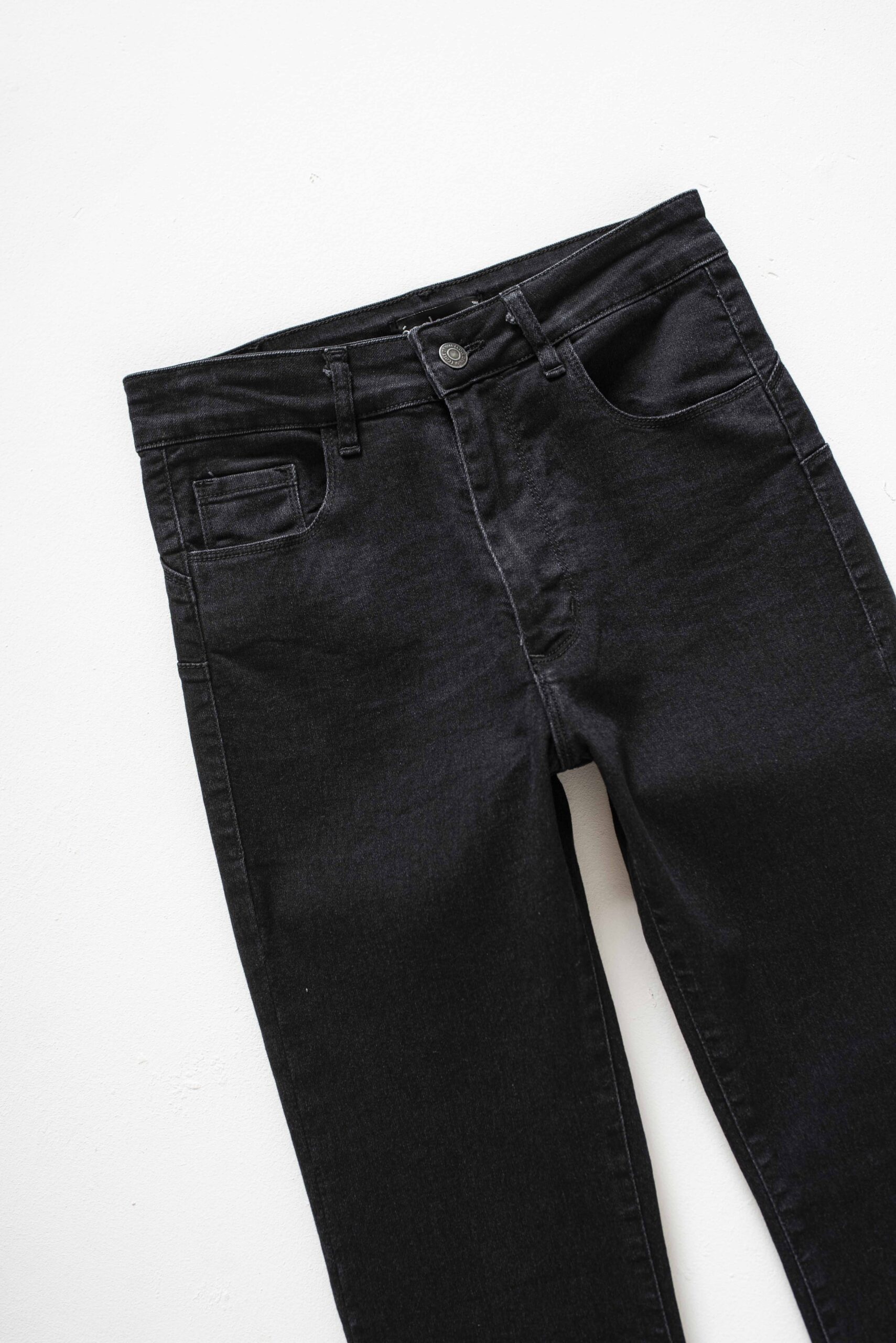 CONFECCIÓN NORMAL TIRO MEDIO ALTO DENIM ELASTIZADO LAVADO NEGRO GASTADO CON BIGOTES