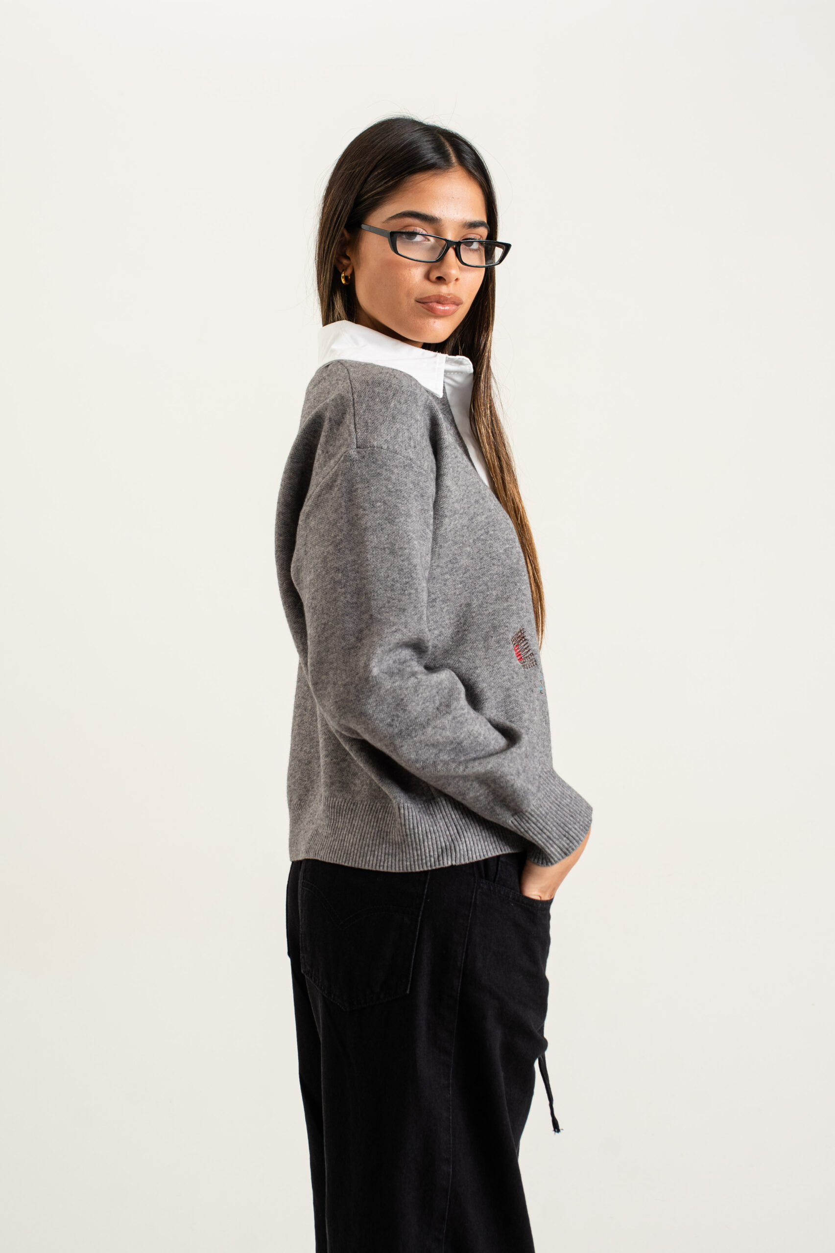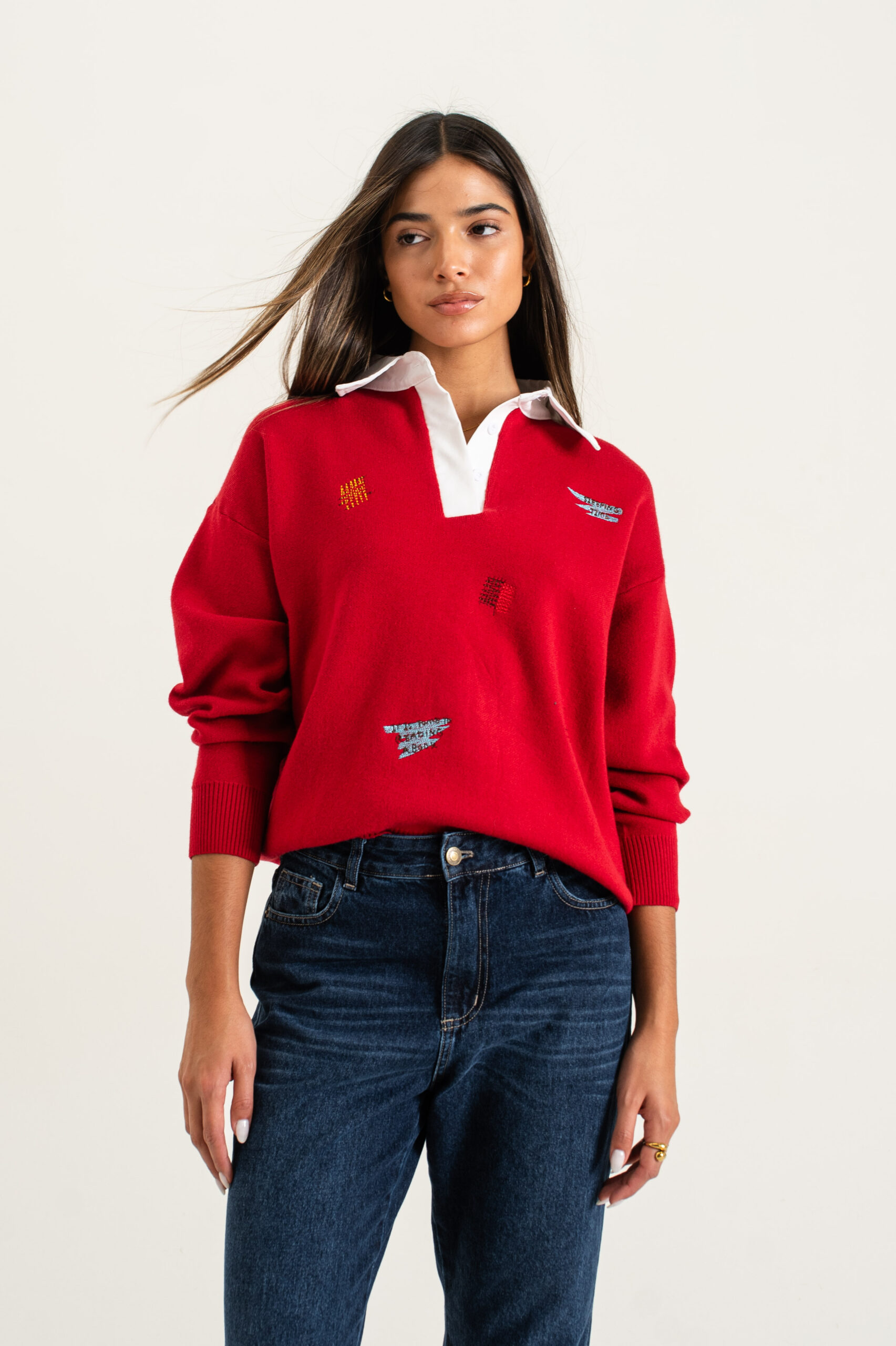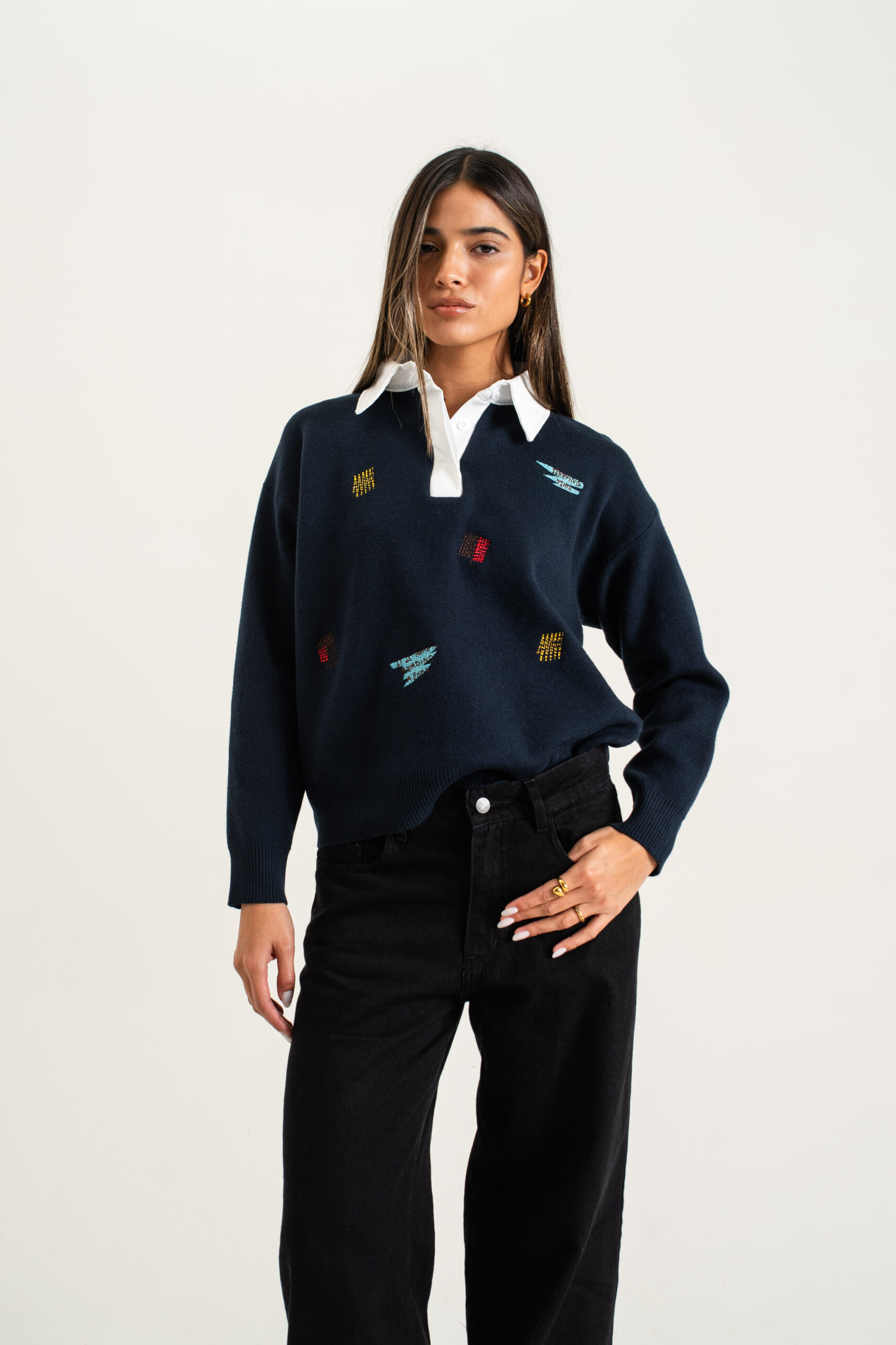SWEATER DE HILO TEJIDO GRUESO CON CUELLO DE ALGODON IMPORTADO