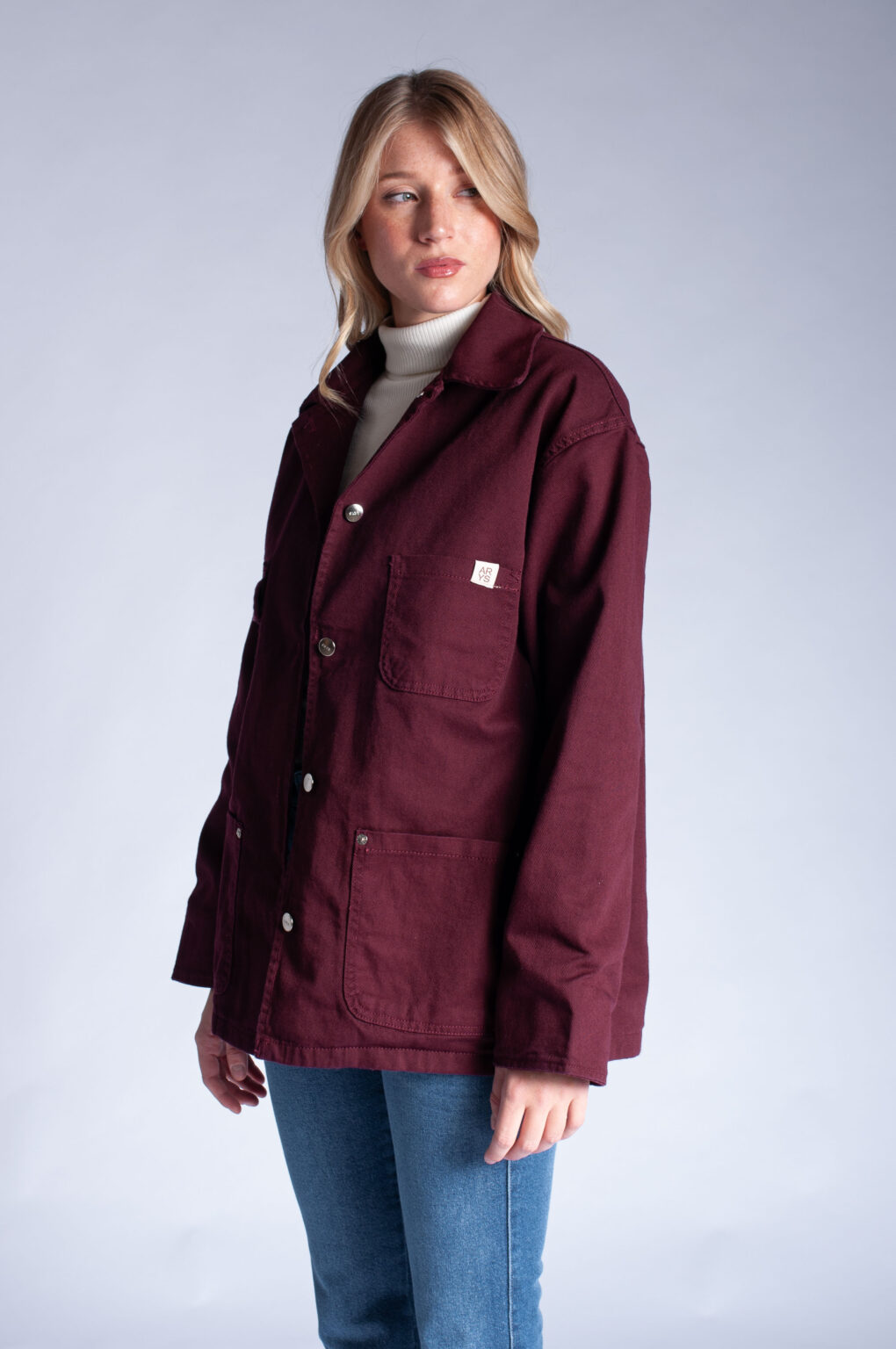 Cazadora de gabardina rígida, color bordo con forrería interna.
